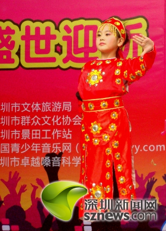 深圳新闻网讯(记者 张钊 通讯员 李咏梅)“盛世迎新,卓越放歌――2013深圳市青少年迎新春专场歌会”日前在深圳市福田区景田社区广场绚丽上演,20多名深圳少年歌手,以演唱原创歌曲的形式,为迎接蛇年新春的深圳带来了欢笑和快乐。